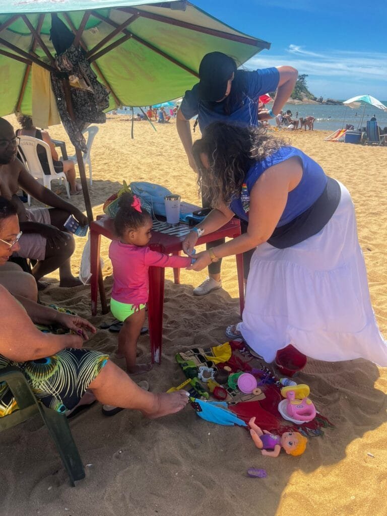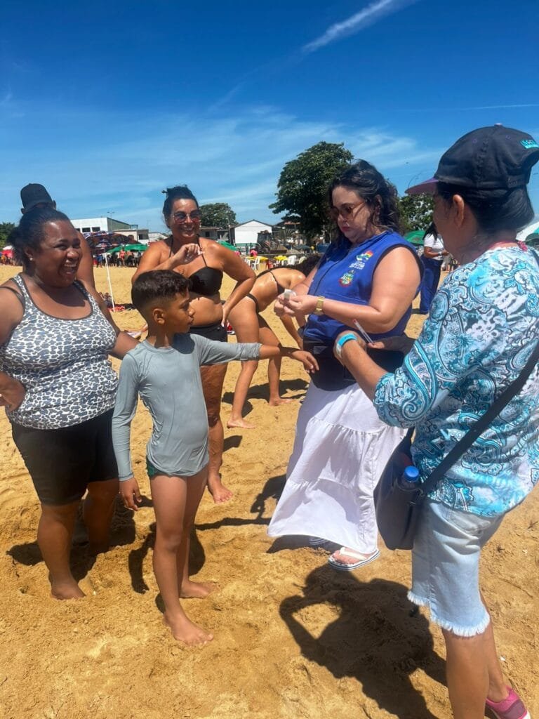 A equipe da Secretaria Adjunta de Assistência Social em Tamoios realizou, nesta sexta-feira, uma importante ação nas praias do distrito, com foco na proteção infantil e na preservação ambiental. A iniciativa incluiu o pulseiramento de crianças, medida preventiva para facilitar a identificação em caso de desencontro com responsáveis, além da distribuição de sacolas plásticas biodegradáveis aos frequentadores.