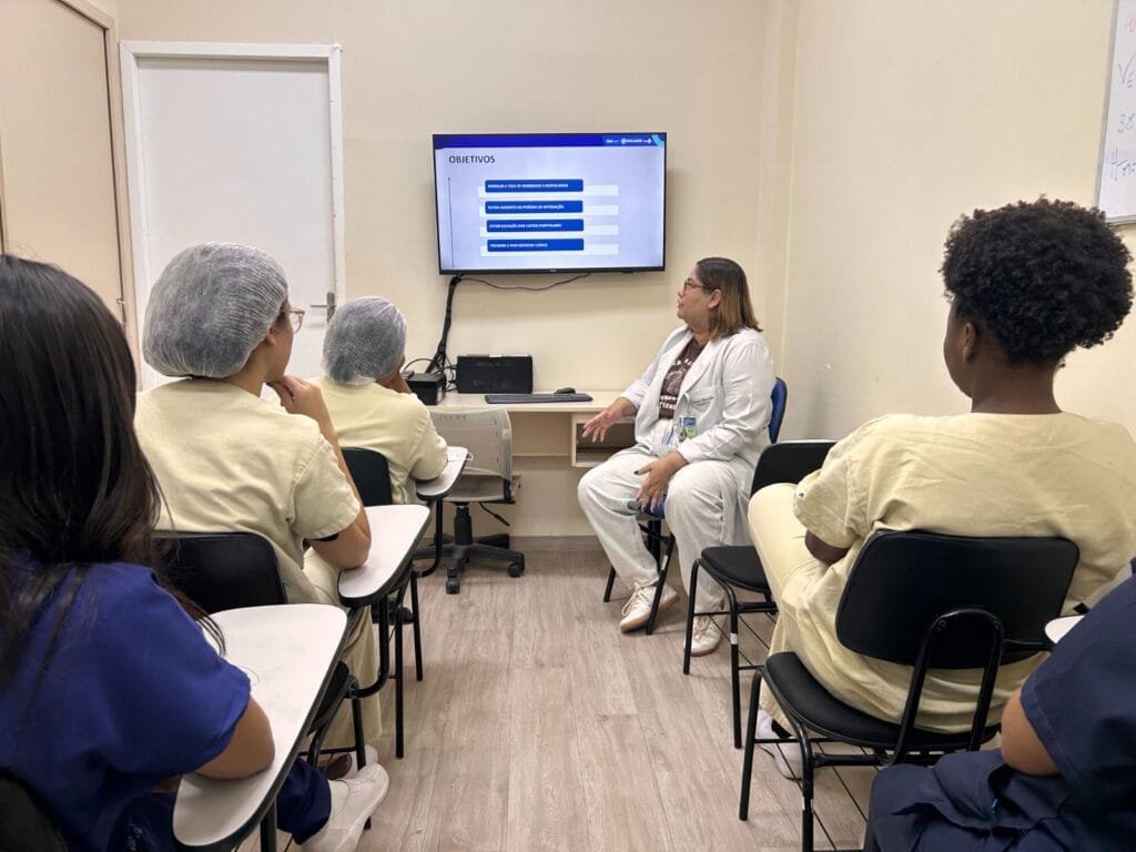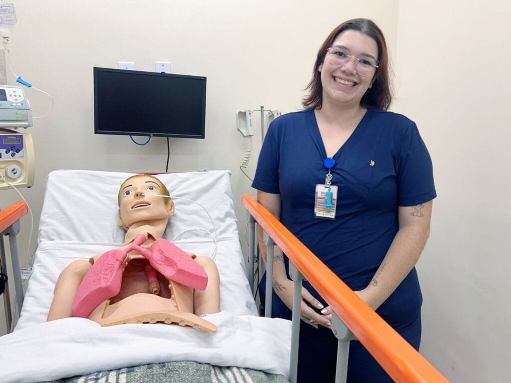 A técnica de enfermagem do centro cirúrgico, Gabriela de Carvalho, de 23 anos, ressalta que os treinamentos reforçam cuidados essenciais à segurança do paciente. “Aprendemos, por exemplo, sobre a proibição do uso de adornos no centro cirúrgico, visto que podem causar queimaduras com o bisturi elétrico. Também reforçamos medidas simples, como manter as grades elevadas após a anestesia para evitar quedas”, relata.