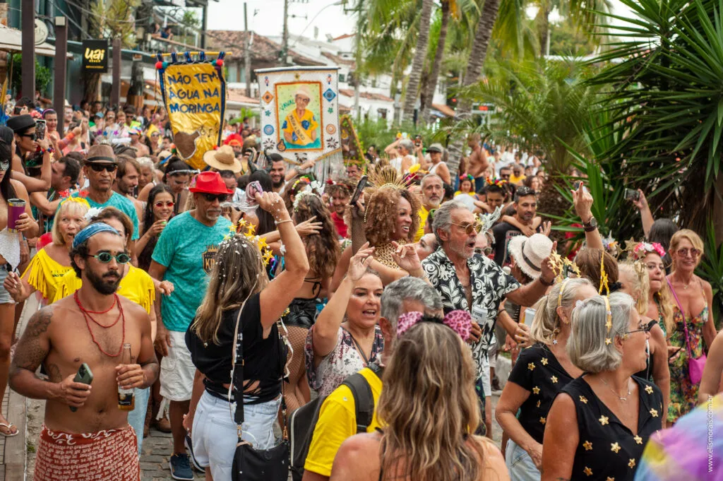 A fanfarra “Não tem Água na Moringa” abre o Carnaval de Búzios, na Região dos Lagos do Rio de Janeiro, nesta quinta-feira (27 de fevereiro). O bloco se apresenta no ‘Baile da Feirinha’, que acontece na Feira Livre Periurbana, na Ferradura, às 20h. O evento é gratuito e aberto ao público, que pode e deve ir fantasiado.  Já o tradicional e animado Cortejo de Carnaval acontece na terça-feira, dia 04 de março, com concentração na Praça Santos Dumont, a partir das 14h, e desfile às 16h. O percurso segue pela Rua Turíbio de Farias e atravessa um dos principais cartões-postais do balneário, a Rua das Pedras. De lá, o cortejo parte para a Orla Bardot, onde o bloco e os foliões chegam junto com o pôr do sol, colorindo ainda mais a maravilha de cenário. O encerramento é com uma grande festa no bar Sambardô.