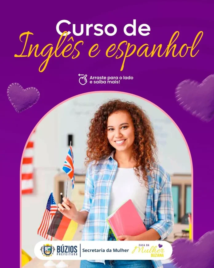 A Casa da Mulher Buziana, por meio da Secretaria da Mulher de Búzios, abriu inscrições nesta sexta-feira (1º) para cursos gratuitos de Inglês e Espanhol voltados exclusivamente para mulheres com 16 anos ou mais. As aulas serão oferecidas nos polos da Rasa e de Cem Braças, com turmas para iniciantes e avançadas. As vagas são limitadas e as inscrições devem ser feitas presencialmente nos locais onde os cursos serão ministrados.