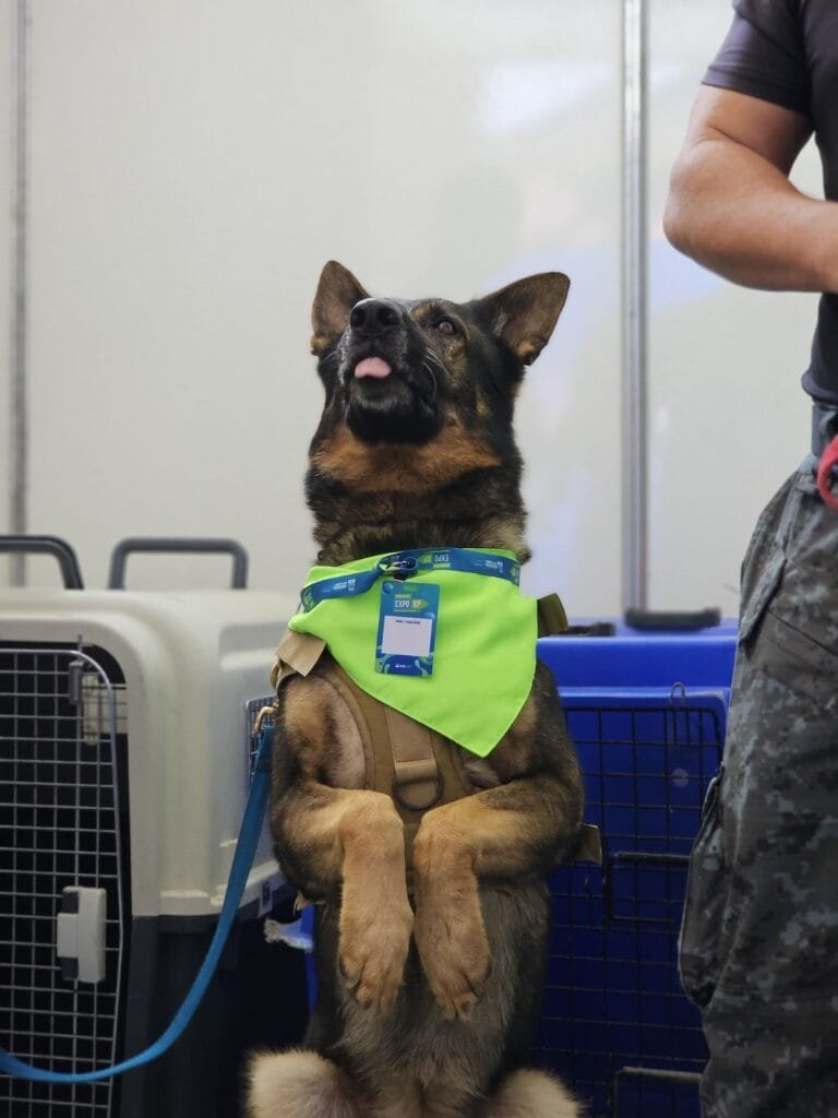 Dupla do Grupamento de Operações com Cães reúne carinho, alegria e muita interação no evento de Ciência e Tecnologia