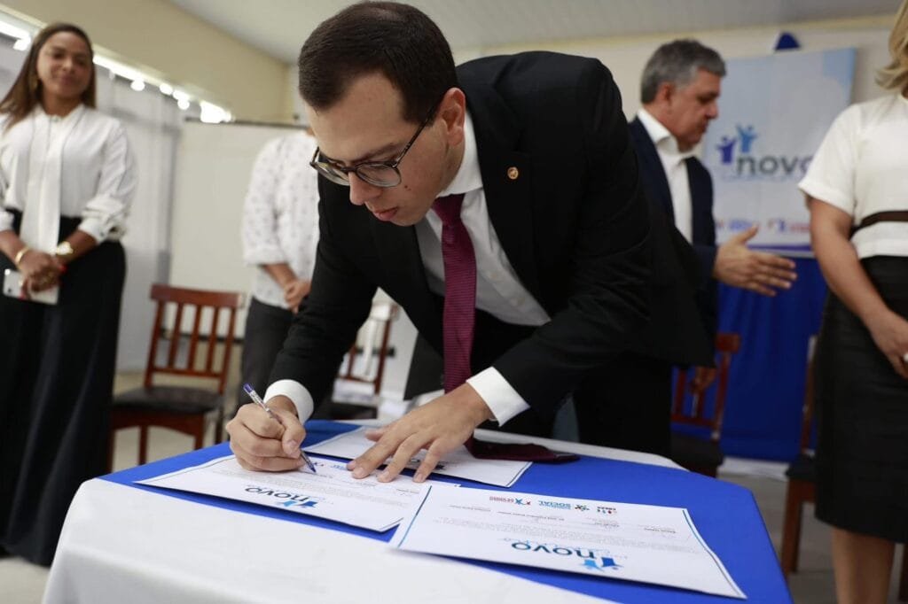A solenidade de lançamento ocorreu no auditório do CREAS e reuniu o prefeito Ramon Gidalte, a secretária de Assistência Social Priscila Bonifácio, a coordenadora do CREAS Luciana Porto e o promotor de Justiça José Francisco Walter, que assinou simbolicamente o termo de pactuação.