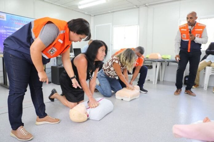 No curso, foram abordadas técnicas teóricas e práticas de cuidados iniciais para vítimas de acidentes, com aplicação de procedimentos até a chegada de assistência qualificada. Dentre os métodos ensinados, estão as manobras de reanimação e ventilação, identificação e conduta em casos de queimaduras, convulsões, fraturas, além da desobstrução de vias aérea, incluindo a manobra de Heimlich, indicada em casos de engasgamento de crianças.