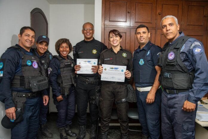 Na terça-feira (14), a coordenadora da Patrulha Maria da Penha de São João de Meriti, Osiane Antônio dos Santos, e o guarda Flávio Alves Dantas foram recebidos na sede da Guarda Civil Municipal de Cabo Frio pelo comandante Adson Lopes, pelo subsecretário Ângelo Amaral, pelo superintendente de Ensino e Instrução, Douglas Ribeiro, e pela coordenadora da PMP, Regiane Costa, junto à sua equipe. Após uma apresentação inicial, os visitantes conheceram a estrutura administrativa e as práticas operacionais do grupamento, localizadas no bairro Passagem, e acompanharam a rotina da patrulha durante 24 horas.