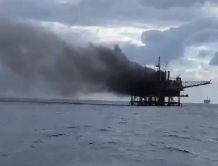 Incêndio atinge plataforma desativada da Petrobras na Bacia de Campos Petro