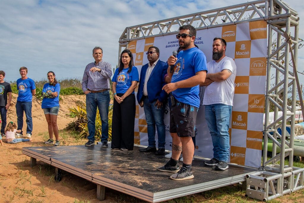 Premiação – O Desafio premiará duas categorias: Livre (um casco) e Catamarã (dois cascos). O barco de Fernando Amorim tem tecnologia desenvolvida no Campus Macaé da UFRJ. A equipe vencedora da regata será aquela que melhor conseguir juntar velocidade e eficiência energética nas provas de corrida das embarcações elétricas movidas a energia solar.