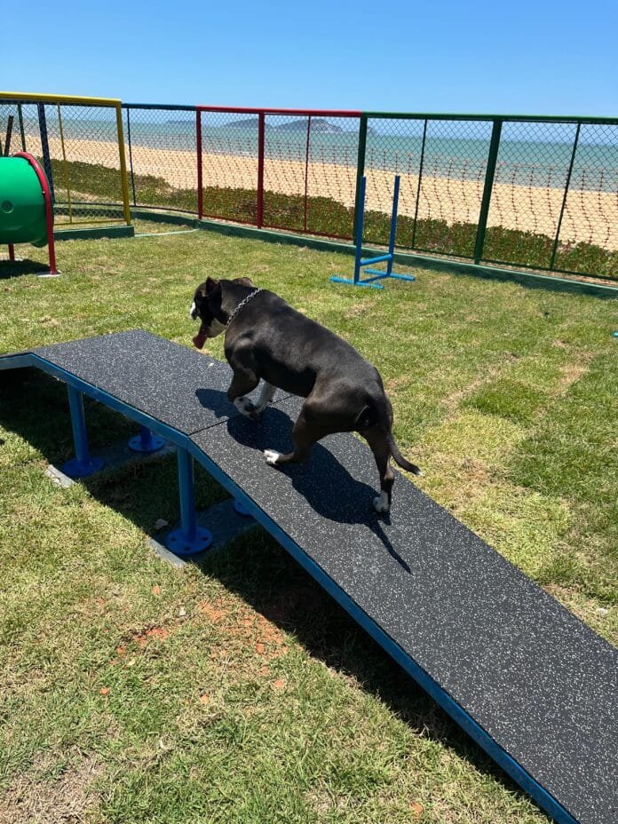 O parque inclui túneis, rampas e outras instalações que garantem a diversão dos cães. Além disso, a vegetação local de restinga foi preservada, mantendo um ambiente natural e sustentável.