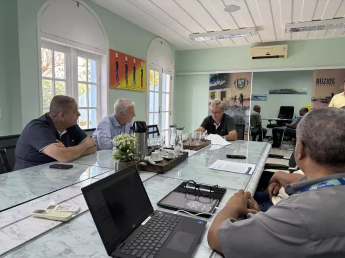 Nesta segunda-feira (4), o prefeito de Búzios, Alexandre Martins, se encontrou com o novo presidente da Prolagos, Luiz Fernando Fabbriani, em uma reunião que incluiu também os secretários de Governo, Marcus Vallerius, de Saneamento e Drenagem, Aziel Vieira, e de Pesca, Agricultura e Esportes Náuticos, Genilson Drumond. O principal objetivo do encontro foi alinhar estratégias para a manutenção dos serviços de abastecimento de água e tratamento de esgoto no município.