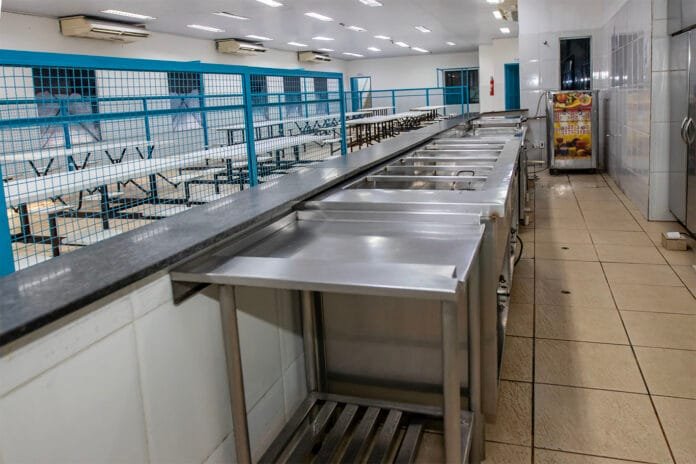 O refeitório tem capacidade para 130 pessoas e possui ar condicionado. A empresa responsável pela alimentação é terceirizada e fiscalizada por uma equipe da Secretaria de Desenvolvimento Social.