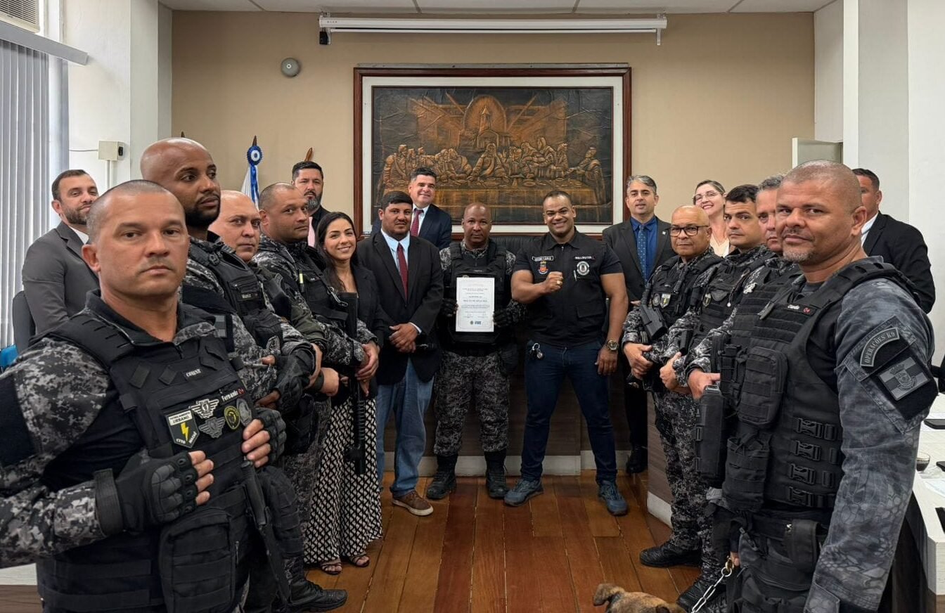 A Câmara Municipal de Casimiro de Abreu entregou, nesta semana, uma Moção de Aplausos ao Departamento de Operações com Cães, que agora integra oficialmente a nova RoMU K9. A solenidade foi conduzida pelo secretário de Segurança Pública, Wellington Santos, que, quando ainda era vereador, foi o autor da proposição que originou a homenagem. A equipe operacional e os cães Pastor Belga Malinois — reconhecidos mundialmente pela inteligência, agilidade e desempenho tático — estiveram presentes, abrilhantando ainda mais o momento.
