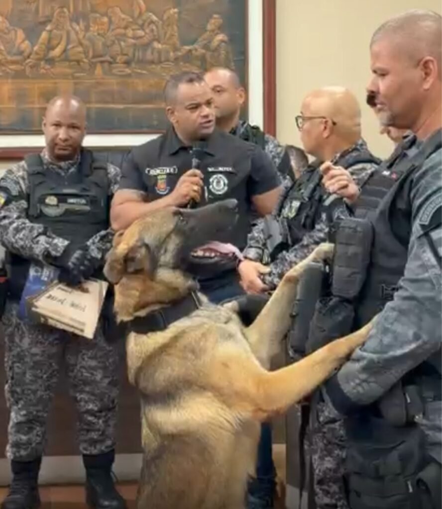 Emocionado, o secretário destacou a importância da homenagem e o impacto direto da integração entre a ROMU e o setor de operações com cães, que vem transformando a atuação nas ruas.