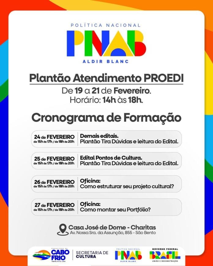 A Secretaria Municipal de Cultura, por meio do Programa de Editais (PROEDI), está oferecendo um “Plantão Tira-Dúvidas” no Museu e Casa de Cultura José de Dome, o Charitas, para os produtores culturais interessados em participar dos editais da Política Nacional Aldir Blanc (PNAB).