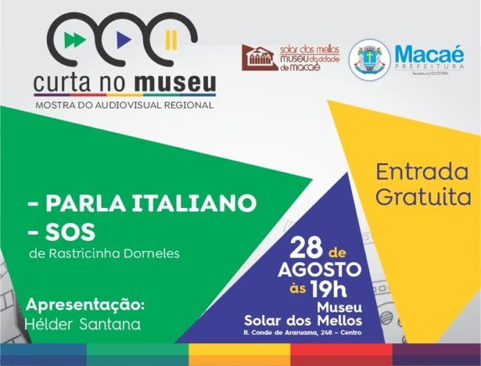 O Solar dos Mellos – Museu da Cidade de Macaé promove, nesta quinta-feira (28), às 19h, mais uma edição do projeto “Curta no Museu”, com entrada gratuita. A programação apresentará os filmes “Parla Italiano” e “SOS”, da premiada cineasta macaense Rastricinha Dorneles. A iniciativa busca aproximar o público da cena cultural local e fortalecer o audiovisual independente.